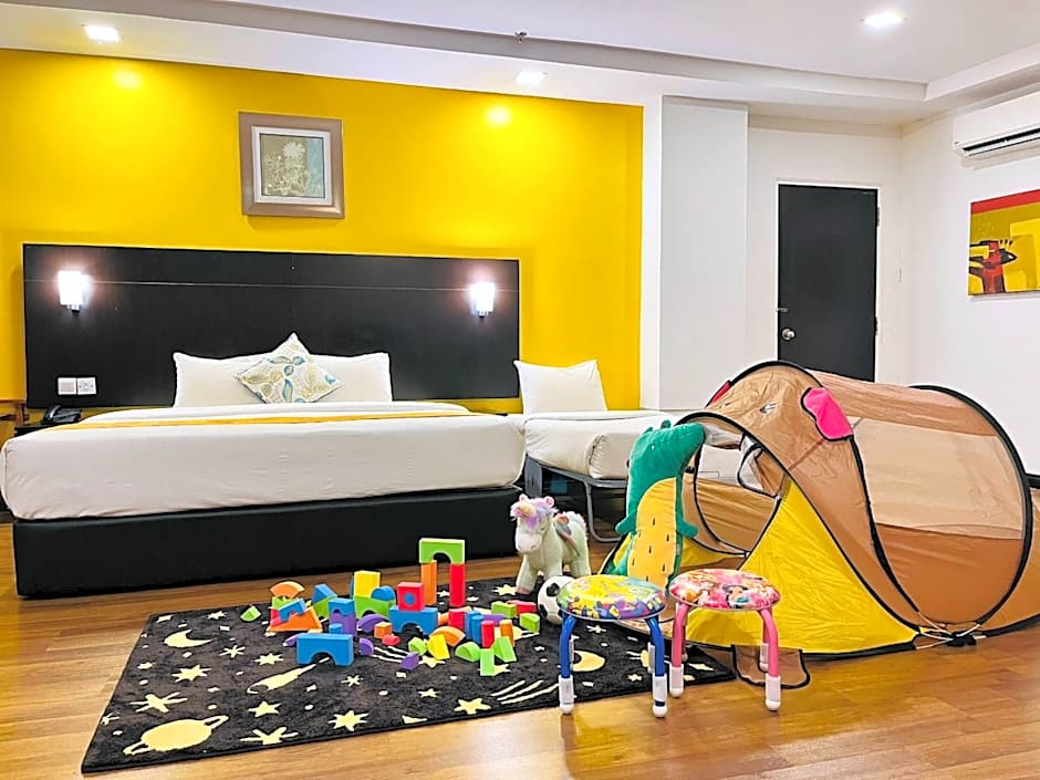 Room is fitted with a king-size bed and a single bed.